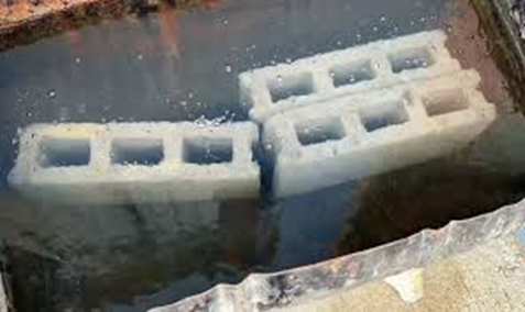 در این آزمون آزمونه ها را در حالتی که توسط توری فلزی احاطه شده اند به طور کامل در آب غوطه ور کرده تا به طور کامل اشباع شوند. سپس وزن غوطه وری ، وزن اشباع و وزن خشک اندازه گیری شده و از این طریق جذب آب، چگالی و میانگین مساحت خالص و …  بلوک سیمانی محاسبه  می شود.